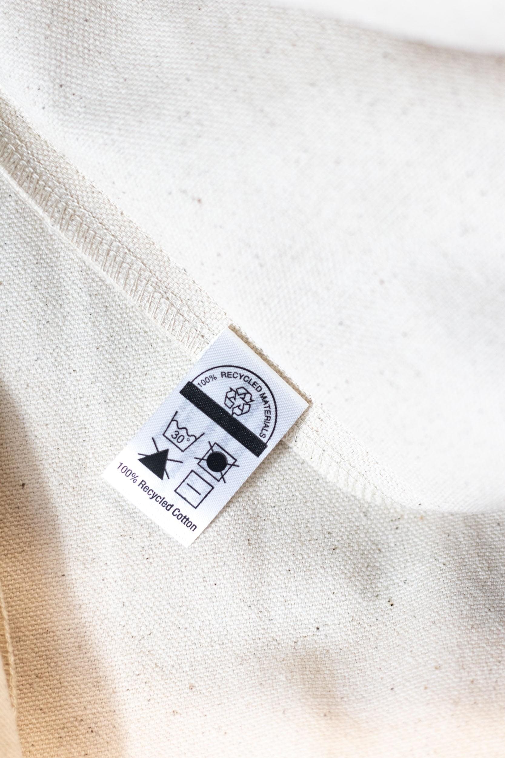 This Recycled Cotton Tote Bag uses 99% less water and 50% fewer Co2 emissions compared to an equivalent product made from virgin materials.